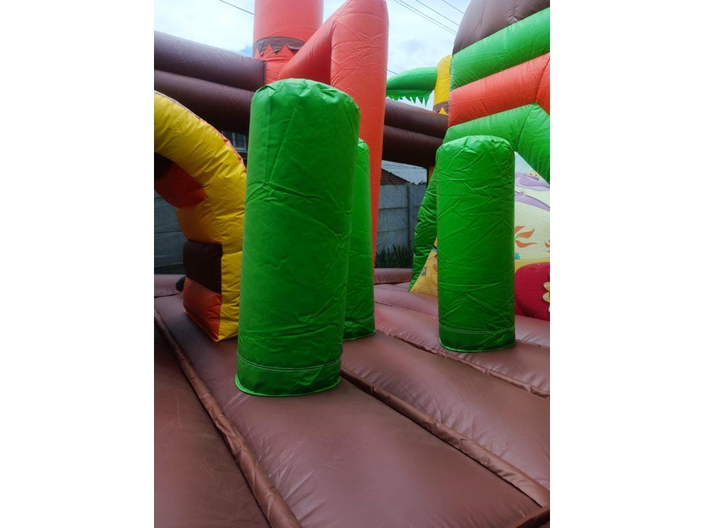 Nafukovací skákací hrad Dino Park 5 × 5 m s veľkým T-Rexom je výrazná detská atrakcia, ktorá okamžite pritiahne pozornosť na každej akcii. Hrad kombinuje skákaciu plochu, prekážky a šmykľavku, čím ponúka deťom veľa pohybu a zábavy. Ideálny pre prenájom atrakcií, festivaly, rodinné oslavy alebo detské eventy.