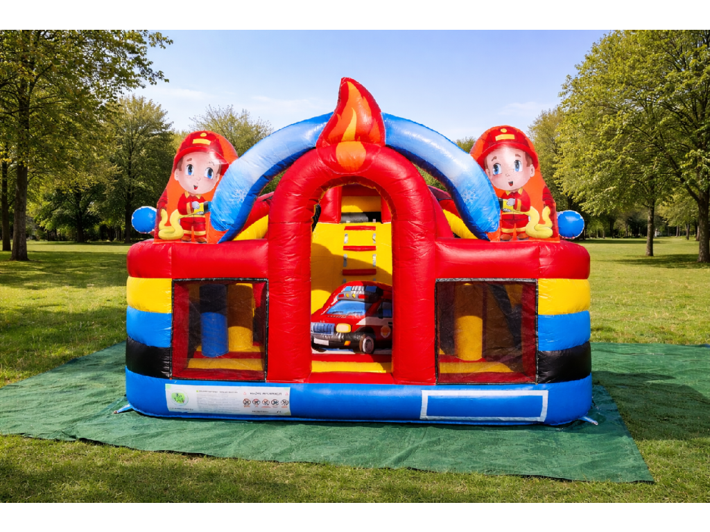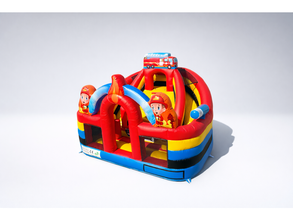 Nafukovacie ihrisko pre hasičov je atraktívny skákací hrad so šmykľavkou a prekážkami, ktorý ponúka deťom množstvo zábavy a pohybu. Vďaka farebnému dizajnu a kvalitnému spracovaniu je ideálny na záhradu, oslavy aj rôzne podujatia.