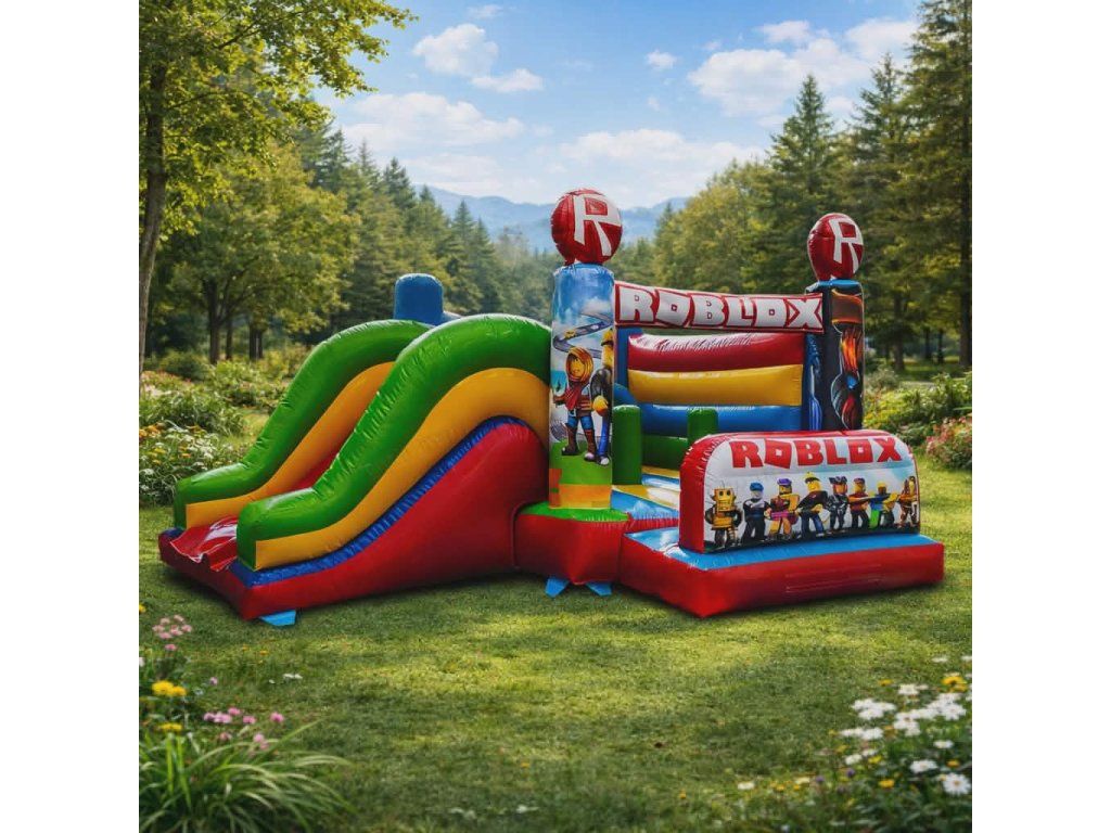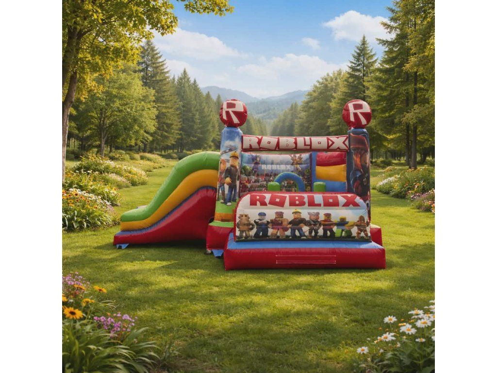 Nafukovací hrad ROBLOX 5x6 m so šmykľavkou je ideálny pre prenájom aj súkromné použitie. Vďaka populárnemu motívu patrí medzi najžiadanejšie atrakcie pre detské oslavy. Robustná konštrukcia z kvalitného PVC zaručuje dlhú životnosť a vysokú návratnosť investície.