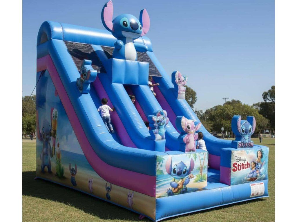 Veľká nafukovacia šmykľavka s populárnym motívom Stitch patrí medzi najatraktívnejšie detské atrakcie, ktoré okamžite pritiahnu pozornosť na každej akcii.