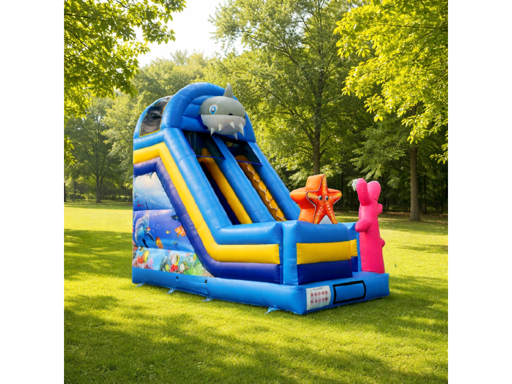 Nafukovacia šmykľavka Shark 2 je atraktívna vodná atrakcia s morským motívom, ktorá zaujme deti na prvý pohľad. Vhodná na záhrady, oslavy aj komerčné využitie.