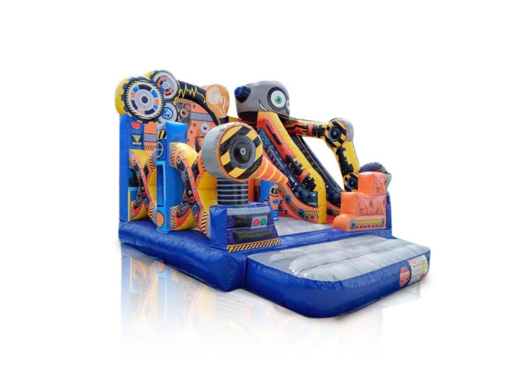 Futuristická atrakcia, ktorá okamžite pritiahne pozornosť detí aj rodičov Originálne nafukovacie ihrisko s robotickou tematikou je ideálnou voľbou pre prenájom na detské oslavy, festivaly, firemné dni či školské akcie. Moderný dizajn v štýle kyber sveta odlišuje túto atrakciu od bežných rozprávkových hradov – a práve to zvyšuje jej atraktivitu aj cenu prenájmu.
