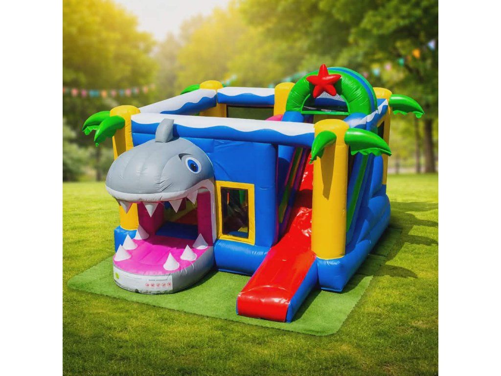 Nafukovacie ihrisko s motívom žraloka patrí medzi vizuálne atraktívne modely, ktoré na akcii dobre vyniknú a prirodzene pritiahnu pozornosť detí.