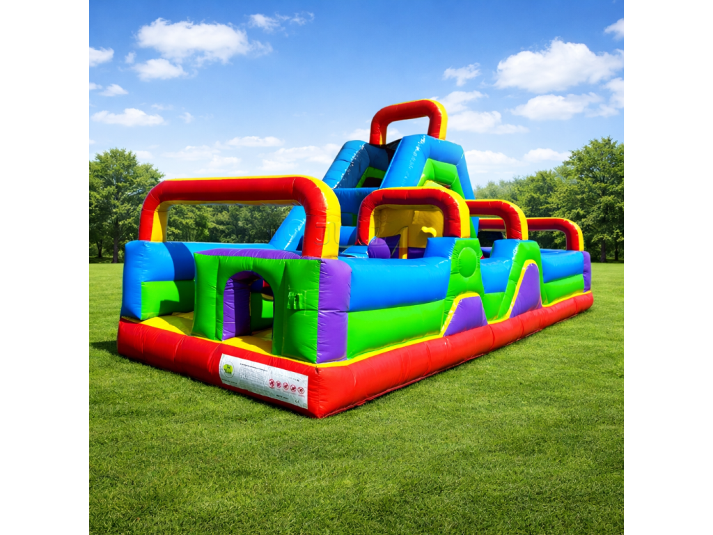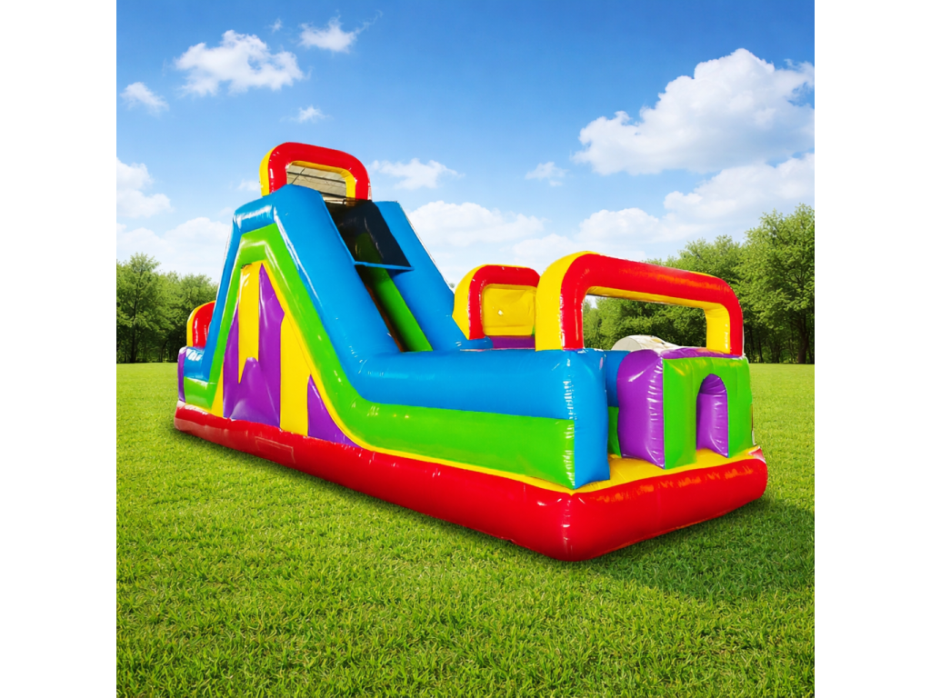 Profesionálny skákací hrad – prekážková dráha so šmykľavkou (8,5 m)