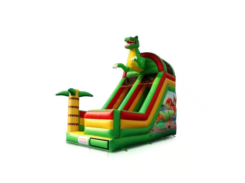 Skákací hrad DINO 6 m je veľká nafukovacia atrakcia so šmykľavkou, ideálna na prenájom a eventy.