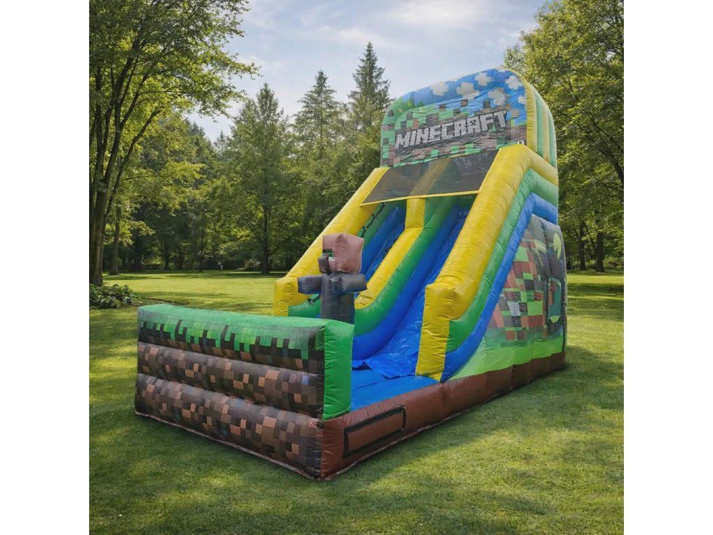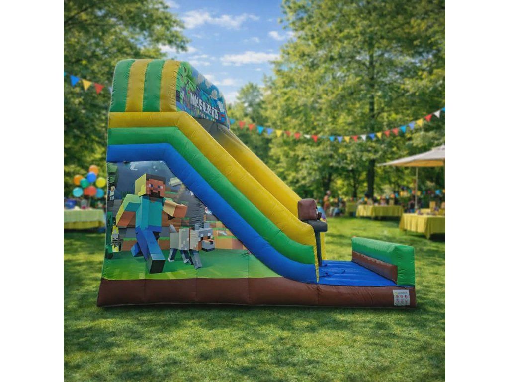 Nafukovacia šmykľavka Minecraft je obľúbená detská atrakcia inšpirovaná známou pixelovou hrou. Farebný dizajn s postavami z Minecraft sveta okamžite zaujme deti a vytvorí skvelú atmosféru na každej oslave, festivale alebo rodinnej akcii. Vysoká šmykľavka a bezpečný výstup zaručujú veľa pohybu a zábavy.