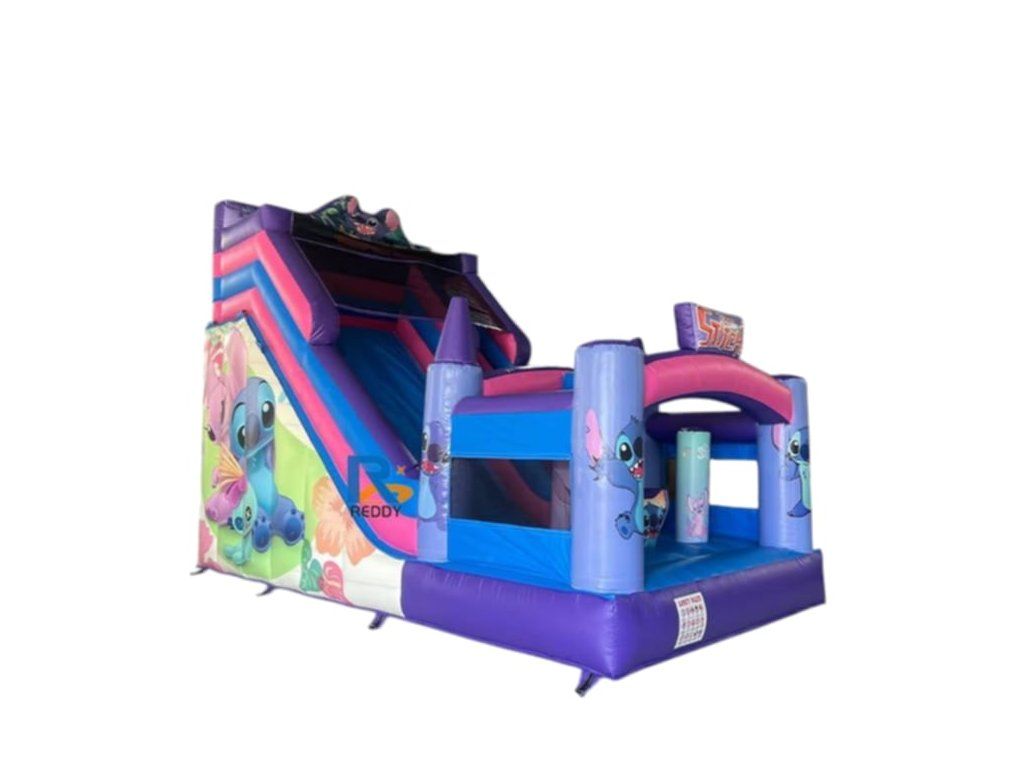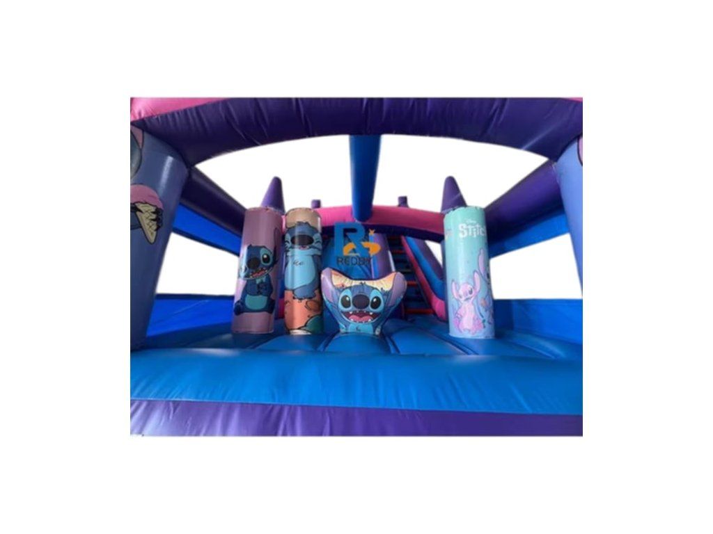 Nafukovací skákací hrad Stitch 6 × 3 × 6 m je atraktívna detská atrakcia s obľúbeným motívom modrého mimozemšťana. Hrad kombinuje skákaciu plochu, prekážky a šmykľavku, vďaka čomu poskytuje deťom maximálnu zábavu. Ideálny pre prenájmové firmy, eventy, rodinné oslavy alebo detské parky. Pevná konštrukcia z kvalitného PVC materiálu zaručuje vysokú odolnosť a dlhú životnosť.
